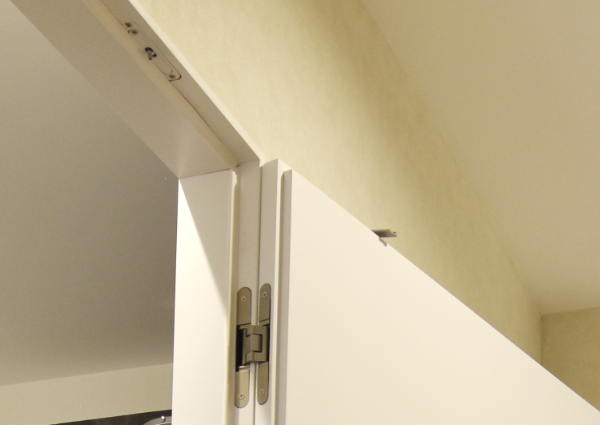 • Verdeckt liegende Bänder (häufig TECTUS-Bänder) sind im geschlossenen Zustand nicht zu sehen, da sie in Türblatt und Zarge eingelassen sind. Die Türblätter sind 3D-Einstellbar und pendeln von alleine nicht auf / zu.